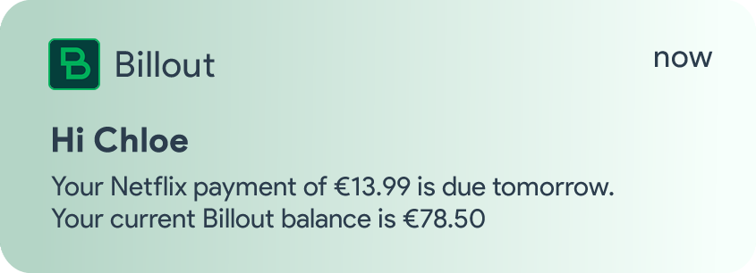 Setup your recurring subscriptions and bills on Billout and we will track & notify you when payments are due.